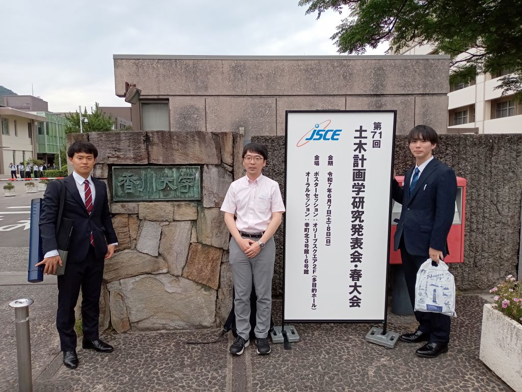 2025年6月7日(土)-8日(日)に香川大学で開催された第71回土木計画学研究発表会・春大会において、田中龍人と吉本光輝が発表しました。